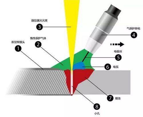 为了扩大激光焊接的应用范围,提高激光焊接的质量,增加焊件的厚度,避免简单激光焊接的局限性,出现了一种新的焊接工艺:激光复合焊接。这里要注意的是,激光复合焊接的优点不仅仅是两种焊接方法的叠加!特别是能量的利用率远远大于两种热源的简单组合。