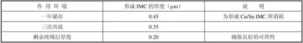 ●SnCu金属间化合物在温度环境下会加速铜层的扩散,从而导致SnCu金属间化合物(IMC)如表1所示,增长;